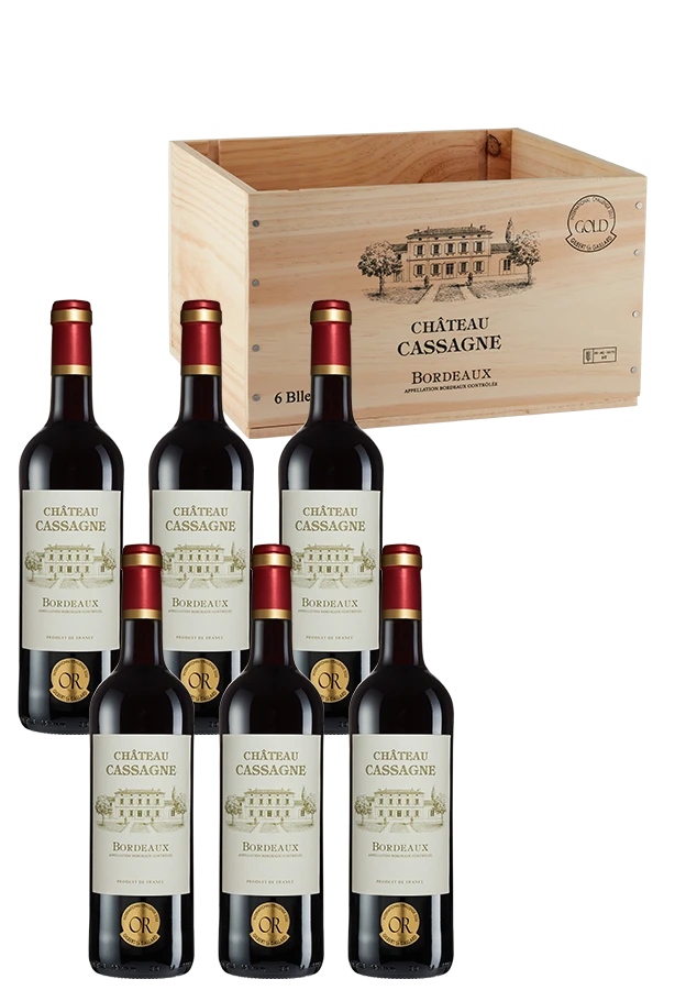 Das Entre-Deux-Mers ist zwar vorwiegend für Weißweine bekannt, doch Dreiviertel aller hier produzierten Weine sind rot. Als Entre-Deux-Mers AOP dürfen allerdings nur Weißweine bezeichnet werden, Rotweine aus der Region sind daher entweder als Bordeaux AOP oder Bordeaux Supérieur AOP gekennzeichnet. Nicht selten bieten diese Weine ein exzellentes Preis-Genuss-Verhältnis, was der Château Cassagne in der Original-Holzkiste eindrucksvoll beweist.