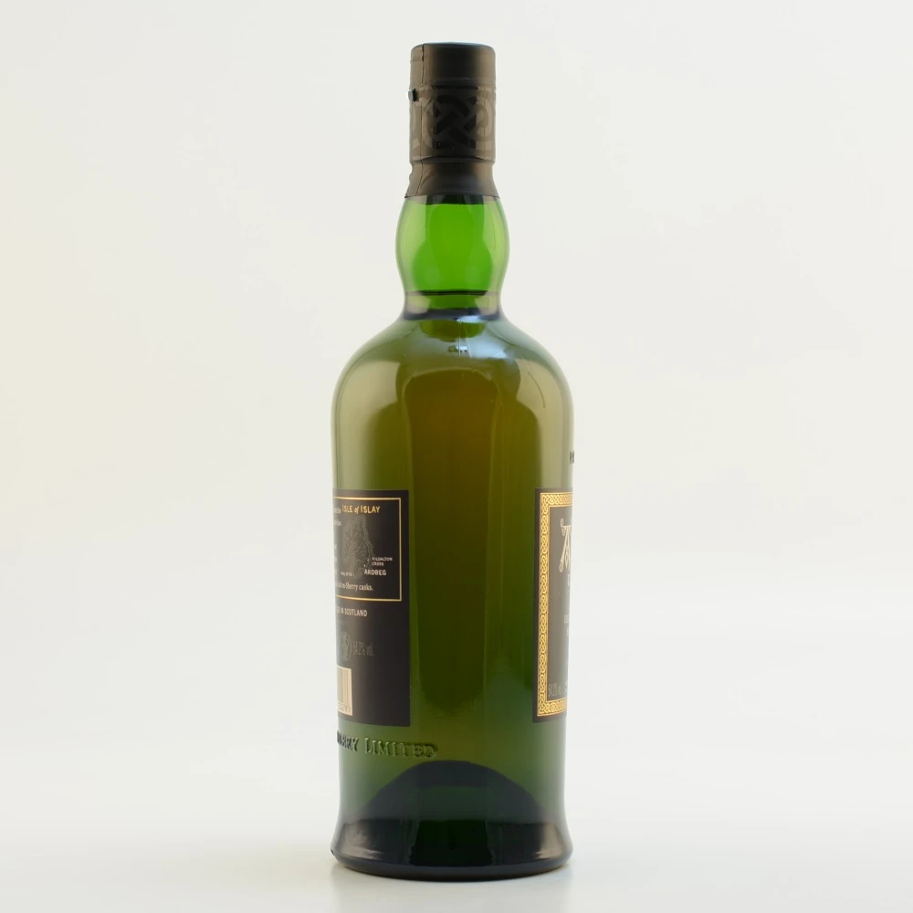 Gereift in Sherry- und Bourbon-Fässern bekommt er die Möglichkeit seine gesamte Stärke zu präsentieren und das macht sich bereits bei dem Aroma bemerkbar. Sehr intensiv und rauchig erscheint er im ersten Moment, gefolgt von einer leichten Ledernote, sowie Tabak und etwas Fruchtigkeit. Der Gaumen erfreut sich dann ebenfalls an diesem rauchigen Aroma. Eine sehr angenehme Malzigkeit macht sich bemerkbar und ein wenig Lakritze, sowie eine Note von Zitrusfrucht. Im Ganzen ist der Ardbeg UIGEADAIL Islay Single Malt Whisky sehr mächtig, üppig und unglaublich gut ausgewogen.