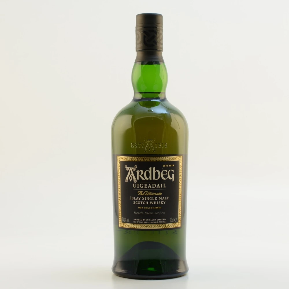 Ein schottischer Tropfen mit dem wohlklingenden Namen Ardbeg UIGEADAIL Islay Single Malt Whisky kann nur aus der Region Islay stammen. Hier und auch in Speyside werden die besten Whiskys hergestellt und abgefüllt und stehen der Welt der Whiskyfreunde zur Verfügung. So auch dieser mit einem angenehm kräftigen Alkoholgehalt von 54,2 % vol. Dieser Single Malt wird in edel wirkenden 700-Milliliter-Flaschen abgefüllt. Da der Ardbeg UIGEADAIL Islay Single Malt Whisky sein Wasser aus der Ardbeg bezieht, verleiht ihm dieses einen sehr angenehmen torfigen Geschmack. Eine ausgezeichnete Komposition ist hierbei entstanden.