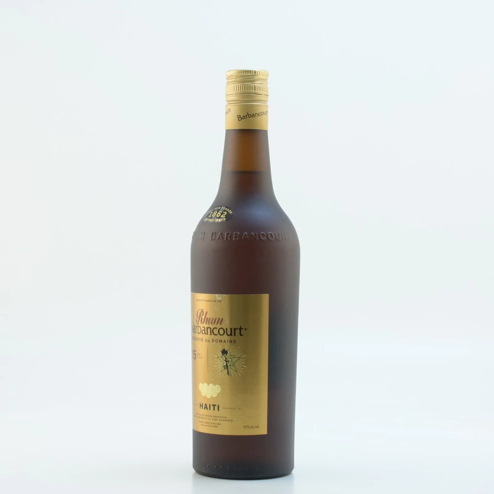 15 Jahre muss der Barbancourt Rhum 15 Jahre in edlen Eichenholzfässern reifen, bevor das Destillat abgefüllt werden darf. Der mehrfach international ausgezeichnete Premiumrum hat einen Alkoholgehalt von 43 % vol. und erinnert leicht an einen Cognac, da die Herstellung dieses ausgezeichneten Barbancourt Rums an die Herstellung von Cognac angepasst wurde – der Gründer der Destillerie stammt aus der Charante, die für ihren Cognac bekannt ist; deshalb verwendet er die dafür üblichen Techniken bei der Destillation. Unter anderem erhielt der Rum bei der „International Wine & Spirit Competition“ im Jahr 2000 in San Francisco die Goldmedaille.