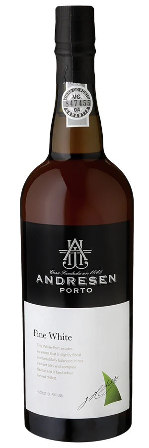 Dieser White Port wird ganz traditionell aus den weißen portugiesischen Rebsorten Códega, Rabigato, Malvasia Fina und Fernão Pires hergestellt. Im Vergleich zu einem roten Portwein, wird er dann aber eher wie ein Weißwein vinifiziert. Die einzelnen Wein-Partien gelangen anschließend rund drei Jahre in große Eichenholzfässer, um ihren typischen weichen, gereiften, aber dennoch frischen Charakter entfalten zu können. Am Ende des Herstellungsprozesses steht dann die Vermählung der einzelnen Grundweine zu dem fertigen Fine White Portwein aus dem Traditionshaus Andresen aus Porto.