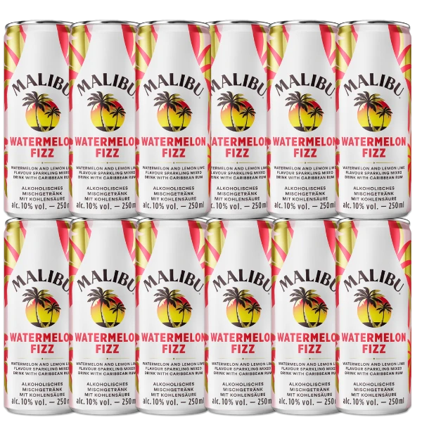 Der coole Malibu Watermelon Fizz nimmt sich einen echten Topseller zu Herzen. So kennt fast jeder den Malibu Rumlikör, bei dem feiner karibischer Rum auf Kokosgeschmack trifft. In diesem Fall wurde auf die Kokosnuss verzichten, wobei die Grundlage für das alkoholische Mischgetränk mit Kohlensäure nach wie vor Rum aus der Karibik darstellt. Angereichert wurde er mit Wassermelone und mit Zitrone, sodass man sich auf eine tropische Verführung einstellen darf. In der schicken Dose mit tropischem Flair strahlt der vorgemischte Malibu Watermelon Fizz sofort Urlaubsstimmung aus. Er macht jedoch nicht nur im Sommer viel Spaß. Ob auf Partys, draußen oder unterwegs oder einfach zwischendurch als Ersatz von herkömmlichen Erfrischungsgetränken wie Limonaden – dieser RTD Trendsetter spricht ein breites Publikum an.