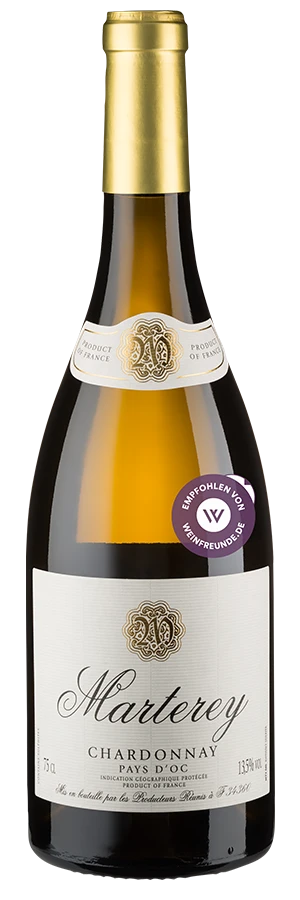 Mit diesem Wein demonstriert Önologe Frédéric Garrabou einmal mehr, wie erfolgreich seine auf höchste Qualität bedachte Arbeit bei den Producteurs Réunis ist. Der Marterey Chardonnay bietet ein hervorragendes Preis-Genuss-Verhältnis und man merkt dem Wein förmlich an, dass sein Schöpfer sowohl Erfahrungen im Burgund als auch in Kalifornien sammeln konnte. Denn Chardonnay ist eigentlich keine typische Rebsorte für das ganz südliche Frankreich. Dennoch bieten die klimatischen Eigenschaften der Gegend ideale Voraussetzungen für die Trauben. Nicht nur herrscht hier Sonne satt, die kühlenden Winde vom Mittelmeer sorgen zudem dafür, dass in den Beeren ausreichend viel Frische verbleibt. Und dann kommt wieder das Geschick von Monsieur Garrabou ins Spiel: Ein Teil des Chardonnays wird in Eichenholzfässern ausgebaut. Das Ergebnis ist ein Wein mit der für Chardonnay typischen Cremigkeit und einem leichten aromatischen Einfluss von Vanille. Hierbei findet der talentierte Önologe das ideale Maß, um ein stimmiges Gleichgewicht in dem Wein zu erzeugen. Mit anderen Worten: Wer Chardonnay mag, wird den Marterey Chardonnay lieben. Nicht nur wegen seiner hohen Qualität, sondern auch weil eine großzügige Bevorratung den Geldbeutel schont.